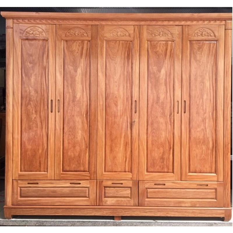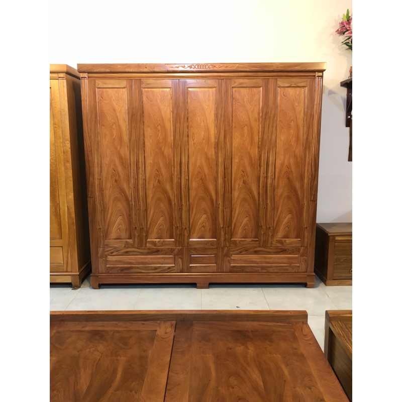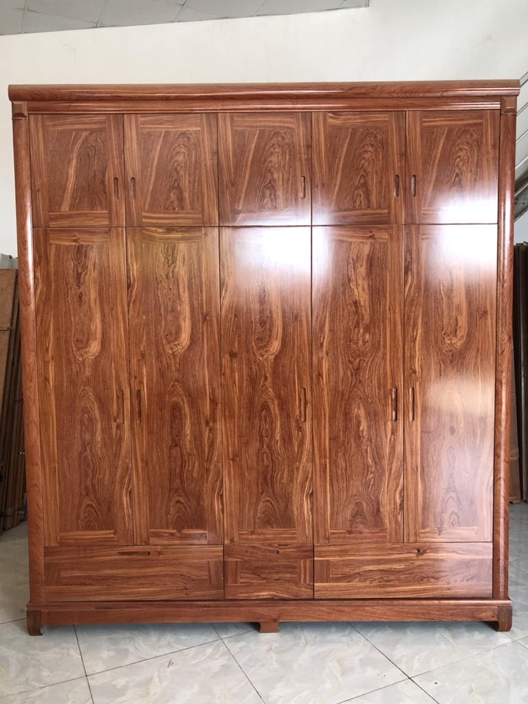 Tủ gỗ hương đá 5 ngăn có kích thước khá lớn thích hợp cho những không gian phòng ngủ rộng rãi.